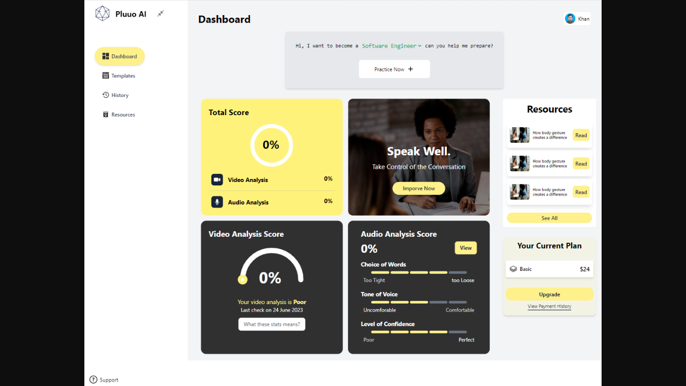 Pluuo is an innovative web application that analyzes interview videos to provide feedback and scores on factors such as lighting conditions and voice tone. The platform was built with a focus on delivering a seamless and responsive user experience.